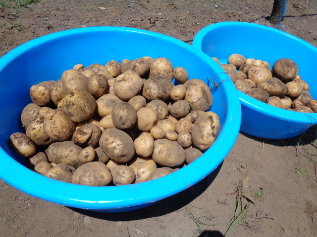 年長さんが植えたジャガイモの収穫に畑へ行きました。 ジャガイモが大きく育っているか心配だったけど、 畑を掘ってみると大きなジャガイモや小さなジャガイモが次から次へと出てきました。 ミッキーの形のジャガイモまで出てきて、こどもたちは大喜び♪ 7月の夜の幼稚園でこのジャガイモを使って何か作るようですよ
