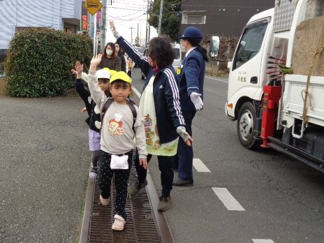家族の人と一緒に通園していた道も、班で歩くと危険な場所、注意しないといけない場所、自動車に気を付ける場所がたくさん。