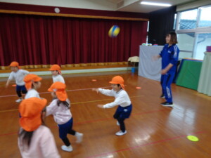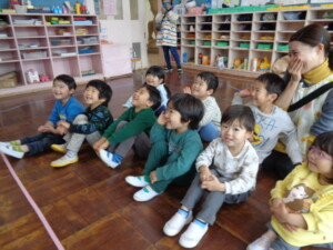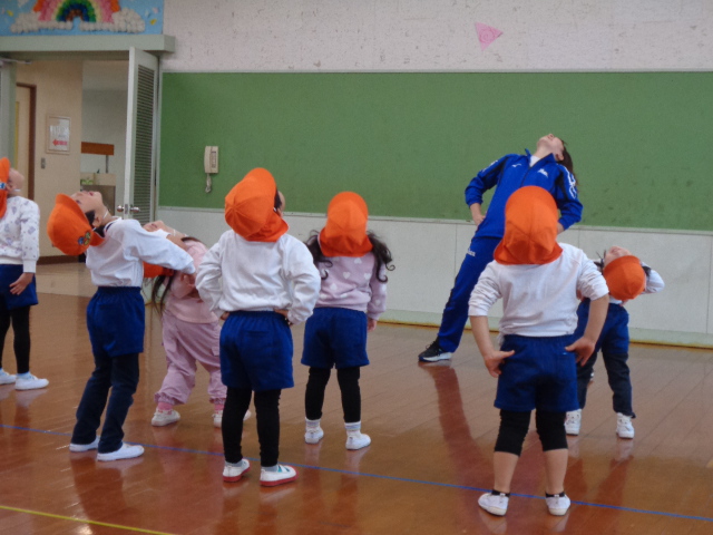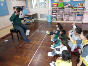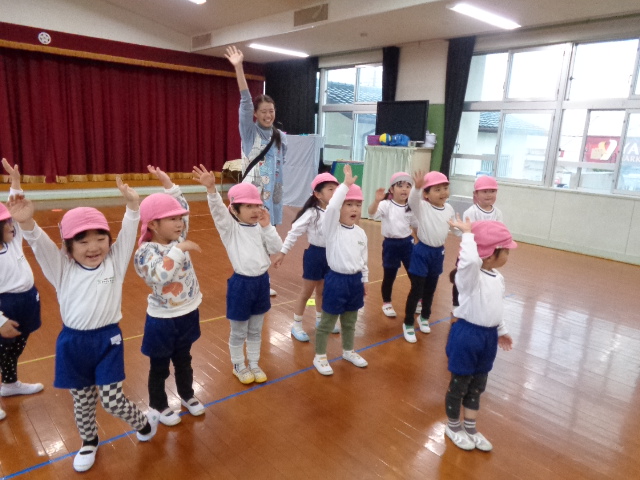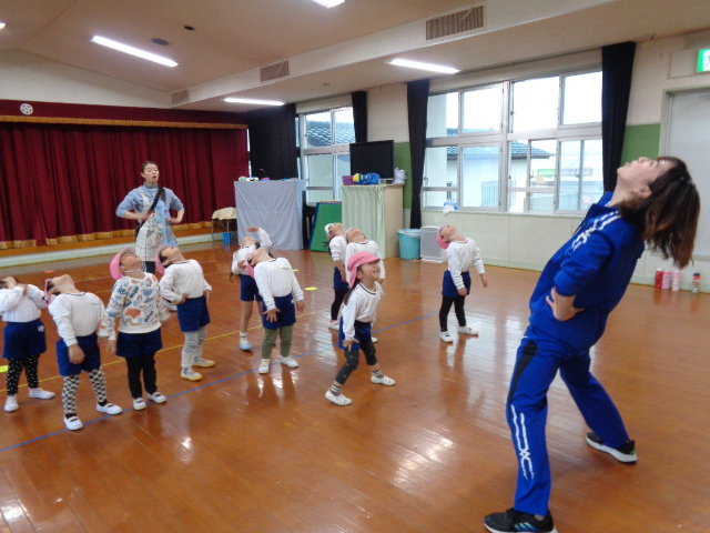 年長さんが小学生になるための準備を始めたように、年少さんもお兄さんお姉さんになるため、年中組から始まる体操教室と英会話教室を体験してみました。 ちょっと大きめの体操着姿で体操の先生と一緒に身体を動かしたり、英会話の先生と楽しくしゲームをしたりと、はじめてをたくさん経験しました。 すこしずつお兄さんお姉さんの顔になってきましたね。