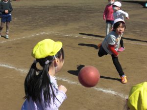 得意な子、苦手な子、どの子も一生懸命ボールを投げ、ボールをよけ、ボールにぶつかりながらも、チームの勝利のため頑張っていました。