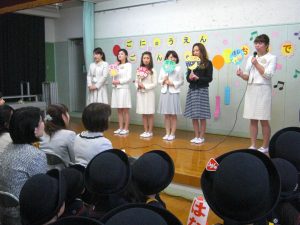 平成29年度入園進級式を行いました。当日はあいにくの雨でしたが、お父さんお母さんと一緒に、新しい制服を着て、幼稚園に来た新入のこどもたち。 ちょっぴりドキドキだったけど、どの子も先生のお話を上手に聞けてました。明日からはみんなでいっぱい遊ぼうね♪ 進級の子どもたちは、クラスがわかっただけで、早くもしっかりした顔。ステキなお兄さんお姉さん、期待してます!